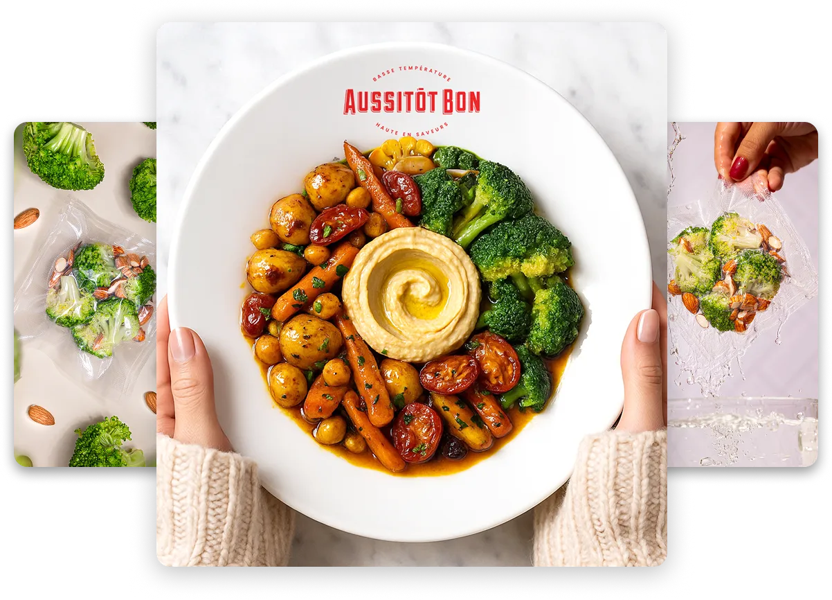 N’ayant trouvé aucune solution pour bien manger simplement à la maison, j’ai créé Aussitôt Bon : des plats gourmets en cuisson sous-vide basse température, prêts en 3 minutes.