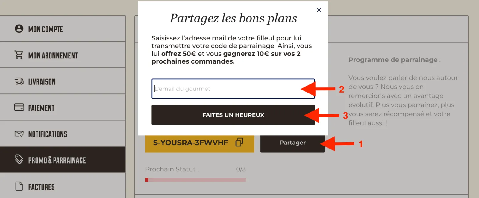 Cliquez sur Promo & parrainage :
